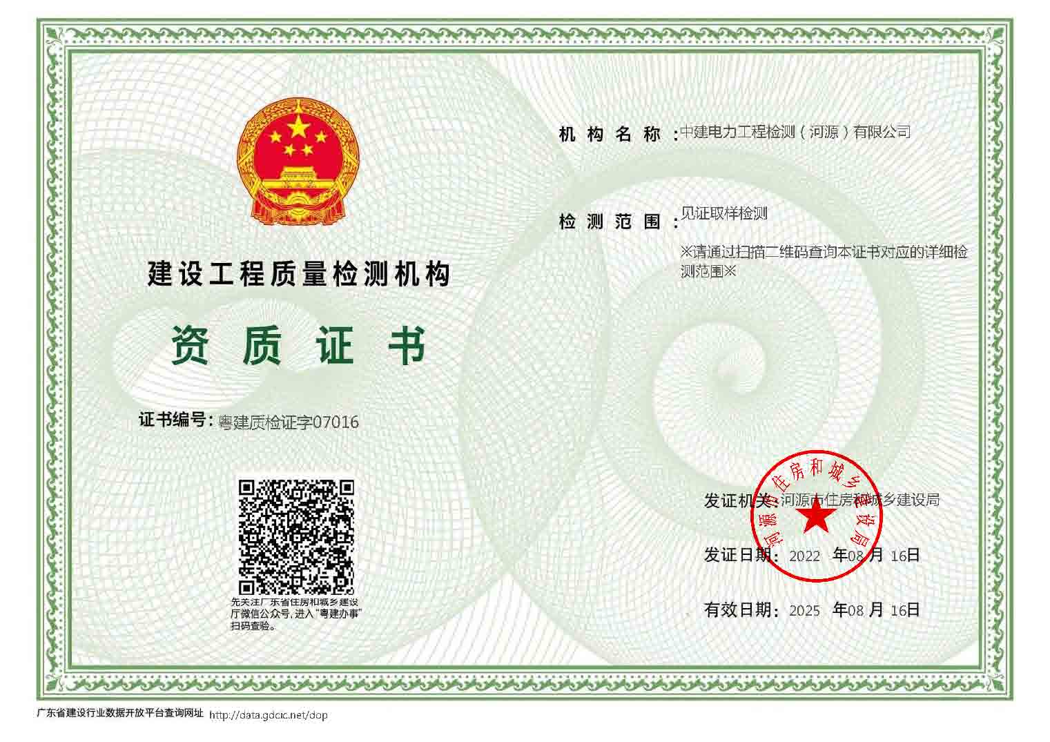 公司成功獲批河源市建設(shè)工程質(zhì)量檢測監(jiān)管平臺(tái)聯(lián)網(wǎng)檢測企業(yè)